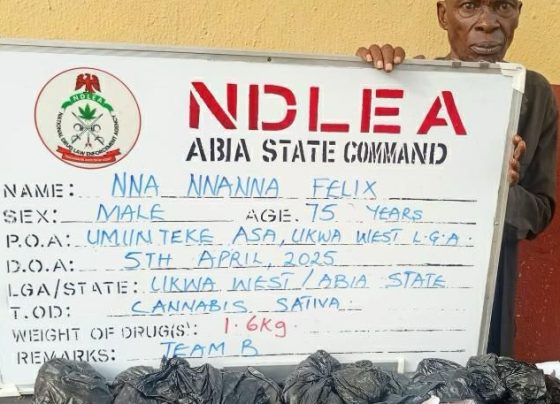 The National Drug Law Enforcement Agency (NDLEA) has arrested a 75-year-old, Felix Nnanna, with 1.6kg skunk, a strain of cannabis.…