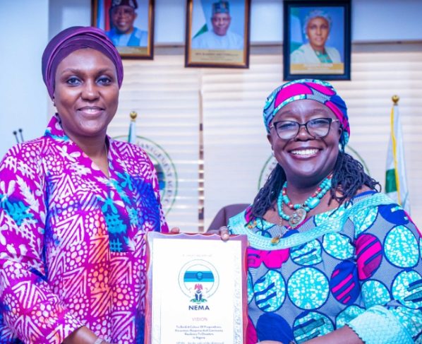 1……..……..in Abuja L-R: Director General, National Emergency Management Agency (NEMA), Mrs Zubaida Umar and Acting Resident Coordinator of the United Nations (UN) , Mrs Elsie Attafuah during the visit of the Ag. UN Resident Coordinator to NEMA Headquarters in Abuja on Wednesday, 25th September,…