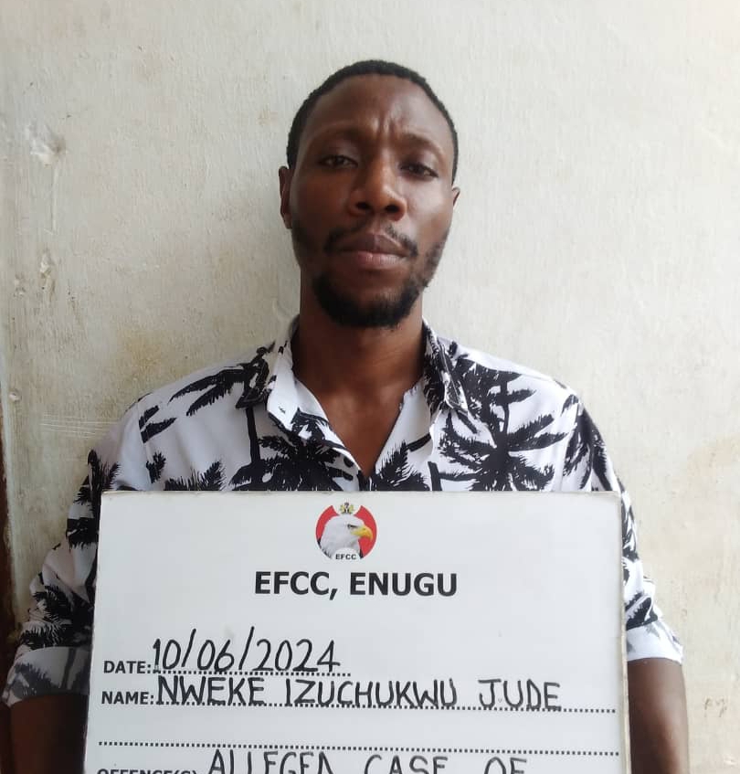 One of the Counts reads: “That you, Nweke Izuchukwu Jude, sometime in April 2024, at Enugu, within the jurisdiction of this Honourable Court with intent to defraud, obtained the sum of N1,100,000. 00 from one Justin Chidozie Chukwukere when you fraudulently presented yourself as an officer of the Economic and Financial Crimes Commission, a pretence you knew to be false and thereby committed an offence contrary to Section 1 of the Advance Fee Fraud and Other Fraud Related Offences Act, 2006 and punishable under Section 1(3) of the same Act”.