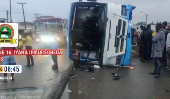 …………The accident occurred shortly after the bus had departed from the BRT park at Iyana Ipaja. A fully loaded high-capacity Bus Rapid Transit (BRT) vehicle overturned inside the dedicated BRT…