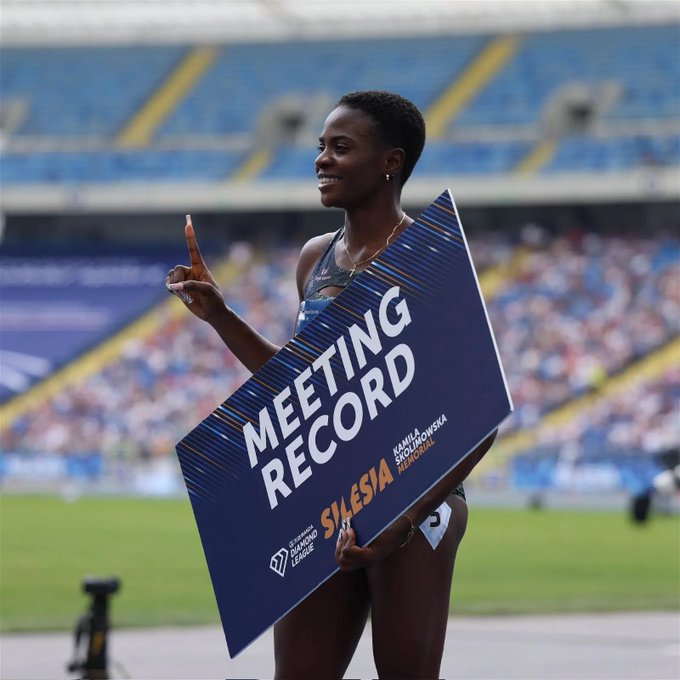 On Sunday, she set a new meet record at the Silesia Diamond League competition in Poland. It was her second Diamond League victory this season.